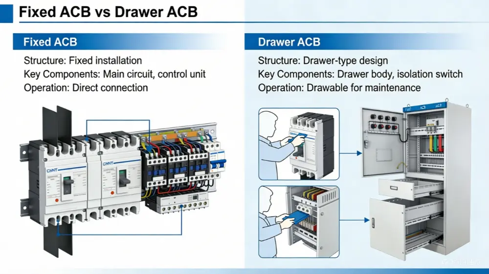 Bộ ngắt mạch không khí là một thiết bị bảo vệ điện áp thấp sử dụng không khí làm môi trường dập tắt hồ quang. Nó đảm bảo phân phối điện an toàn bằng cách tự động ngắt dòng điện sự cố và duy trì sự ổn định của hệ thống. Trong các hệ thống điện hiện đại, bộ ngắt mạch không khí rất cần thiết để bảo vệ thiết bị và đảm bảo hoạt động liên tục.